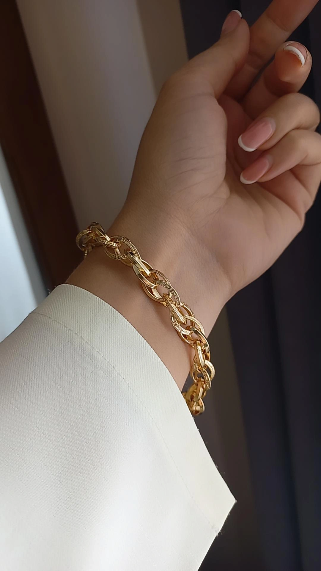 دستبند شنل ، برند شین ، طلاروس ، رنگ ثابت ، دارای زنجیر اضافه ، قفل ملوانی مشابه طلاناموجود