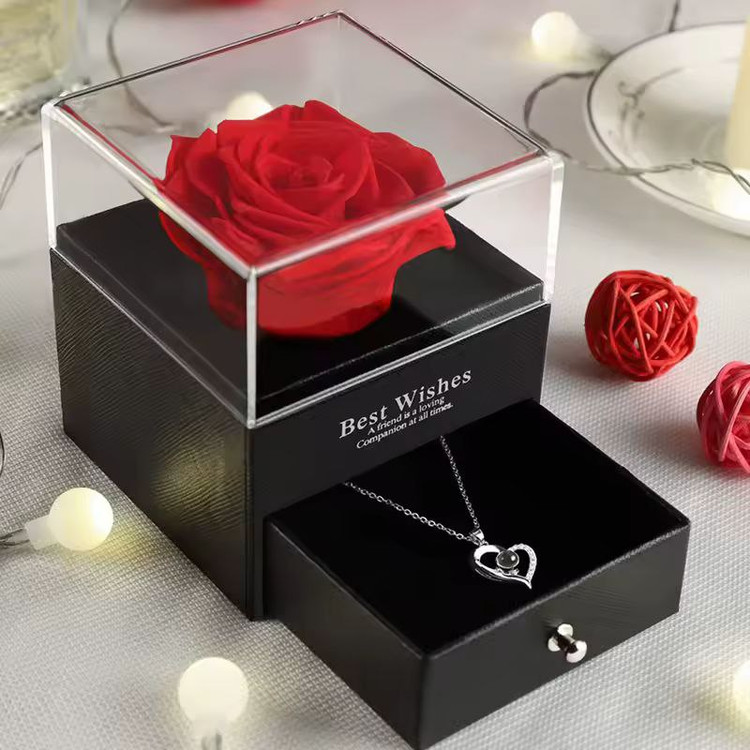 جعبه کادویی گل دار ، مناسب گردنبند، بالاترین کیفیت ، مشکی با گل رز قرمز