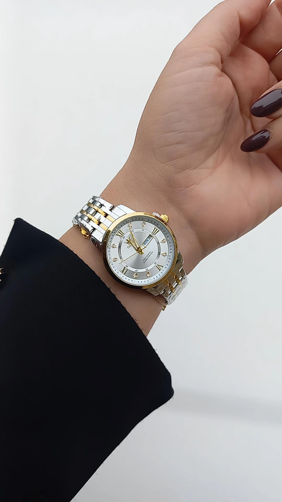 ساعت زنانه الوز ، موتور کوارتز، مقاوم در برابر آب، ایام هفته، روز شمار، طرح الماس، بندوستاری، صفحه شب نما، قفل پروانه ای مخفی، شیشه سافایر ضدخش