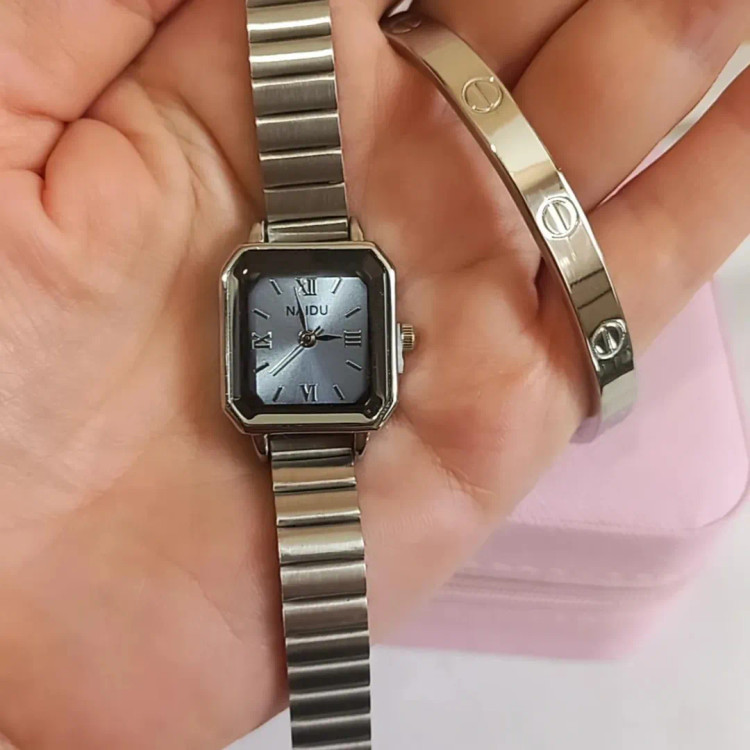 ساعت صفحه آبی زنانه. بند ریلی ، بند قابل تنظیم توسط فرد ، بک استیل ، باطری قابل تعویض ، کیفیت بالا