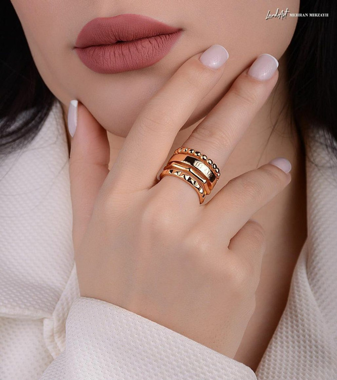 انگشتر پورتوفینو زنانه ، لاین ها متصل هستند، رنگ طلایی