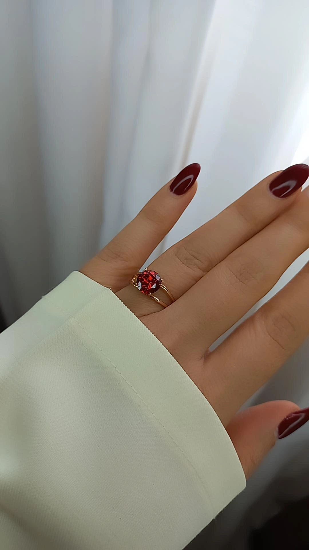 انگشتر طرح جواهری سرخ ، آبکاری قوی طلا، بدون حساسیت