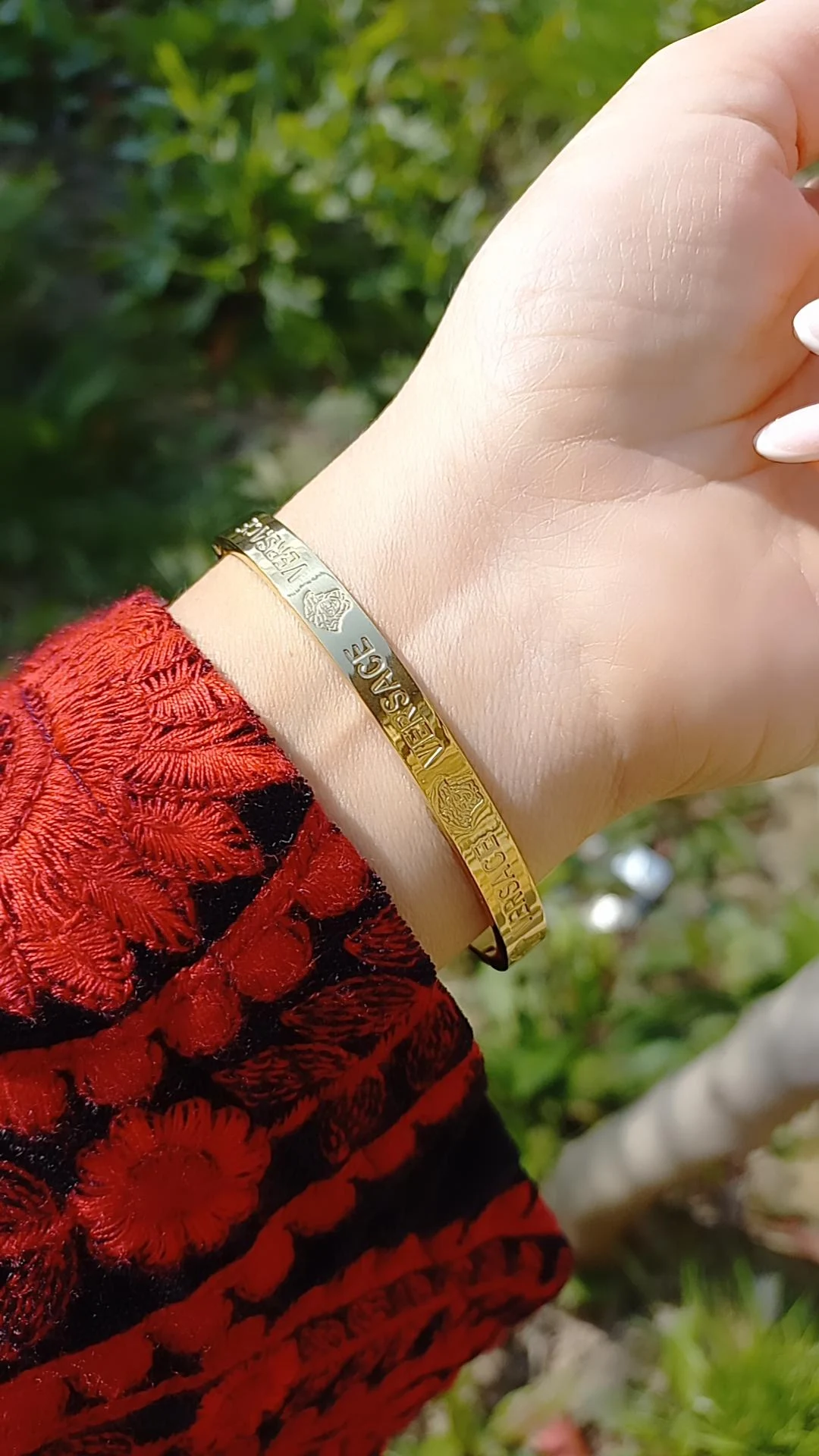 اندازه بنگل حدودا ۵/۵*۶/۵ سانت میباشد. قابلیت باز و بسته شدن دارد. داخل و بیرون بنگل دارای حک میباشد. پهنا ۶ میل است.
