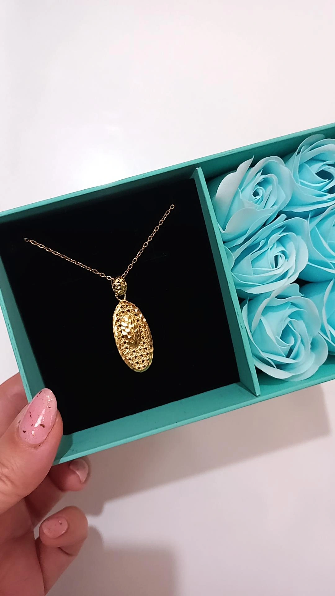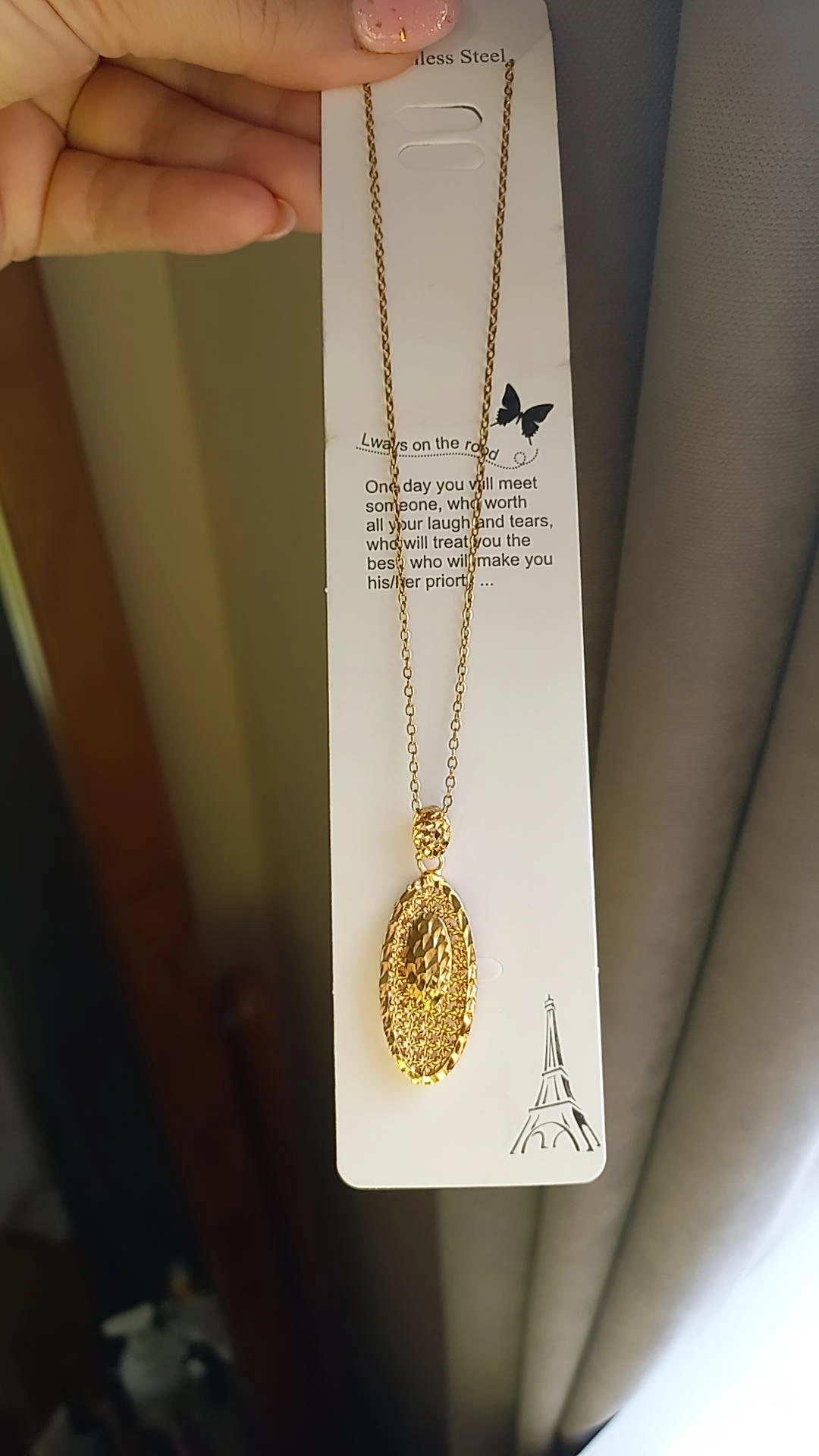 گردنبند زنانه طرح طلا ، جنس زنجیر استیل با طول حدود ۴۵ سانت همراه با پلاک تراشدار برنج کپی