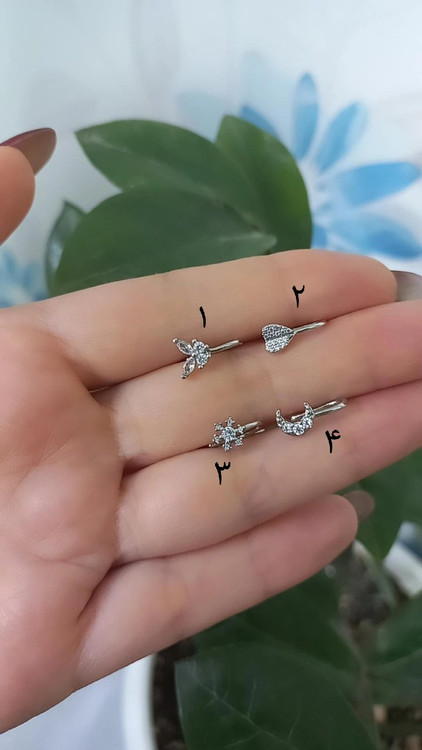 پیرسینگ بینی ، استیل ، رنگ ثابت ، نگینها مخراج شده ، رنگ سیلور