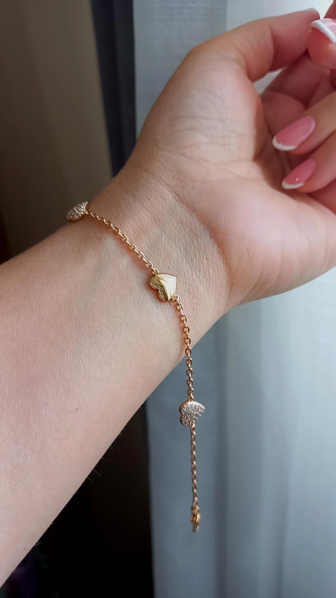 دستبند ظریف قلب ، برند معتبر ژوپینگ و دارای آبکاری طلا ، مجلسی