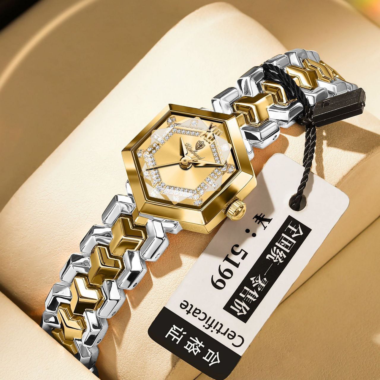 ساعت زنانه بین باند مدلی نو، جنس بند فولاد ضدزنگ، سبک غیررسمی، ضخامت ۱۰ میل، قطر صفحه ۲۳ میل، شیشه معدنی الماس ضدخش، قفل دستبندی، موتور کوارتز۱٬۶۸۵٬۰۰۰ تومان